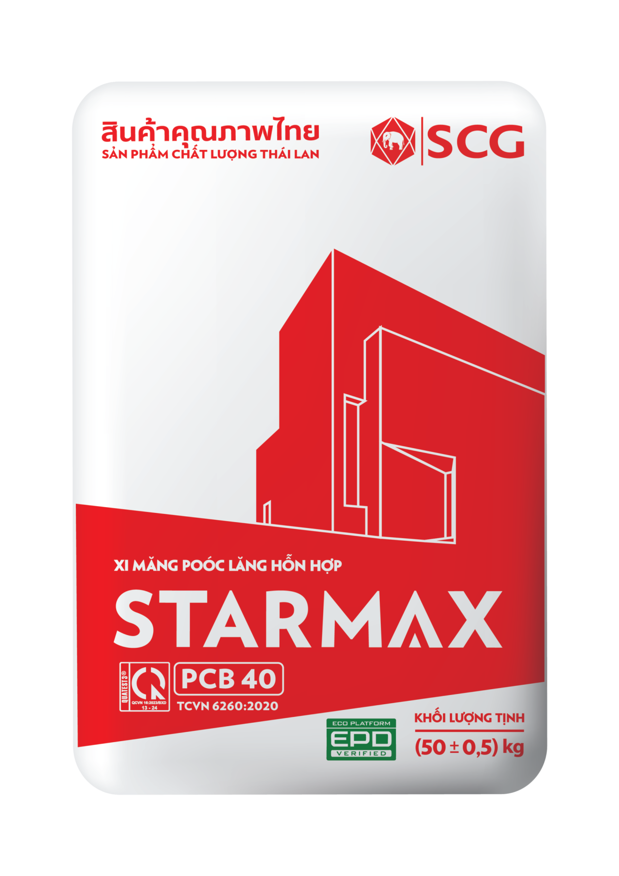 Xi măng STARMAX PCB40 là dòng xi măng PCB40 - xi măng đa dụng chất lượng cao phù hợp với hầu hết các công trình và điều kiện khí hậu tại Việt Nam. Sản phẩm được đóng bao với trọng lượng 50kg.